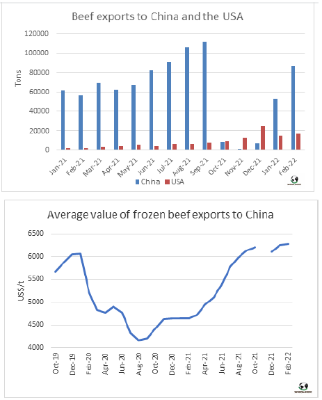 2月中國的巴西牛肉采購量占巴西牛肉出口量的59%