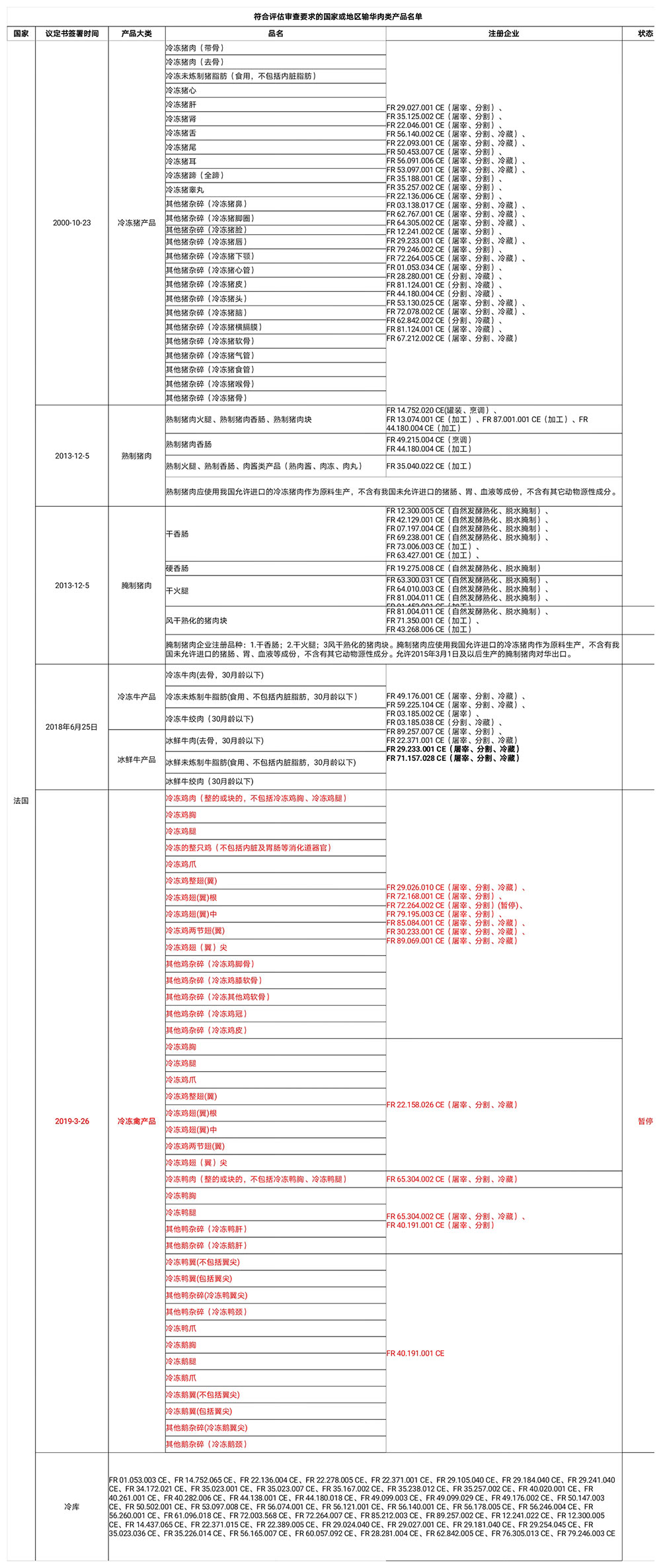 FR 01.452.001 CE等14家企業(yè)自2023年3月28日起啟運的輸華豬肉產(chǎn)品進(jìn)口申報。