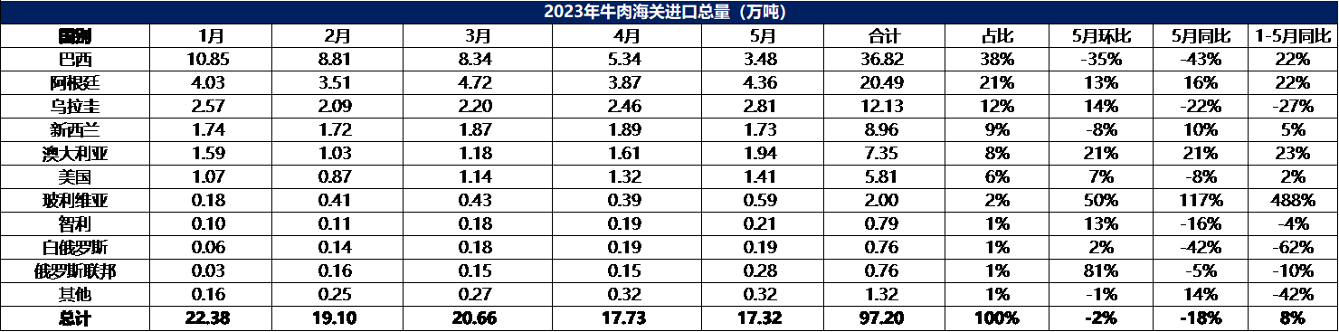 2023年5月冷凍牛肉進口數(shù)據(jù)