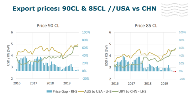 “2020年我們要將進(jìn)口集中在中美洲國家和墨西哥”一位進(jìn)口商在美周進(jìn)口肉類委員會年度會議上說。由于該會議與中國舉辦的進(jìn)博會時間沖突,來自澳洲和南美的出口商代表團數(shù)量很少,來自烏拉圭的肉類代表Las Piedra 和San Jacinto, Marfrig和Minerva多個國家的代表、以及貿(mào)易公司的代表參加了此次大會。會議上,烏拉圭肉協(xié)強調(diào)了牛肉到中國和美國的出口價格差異越來越小,澳洲牛肉到中國和美國的出口價格差異也越來越小,2019年差距已經(jīng)趨于零差距。甚至出口到中國的85CL和90CL產(chǎn)品價格開始高于美國。出口商還提到了出口到中國的低成本、低門檻的問題,2016年-2017年,美國采購價格比中國高30%。