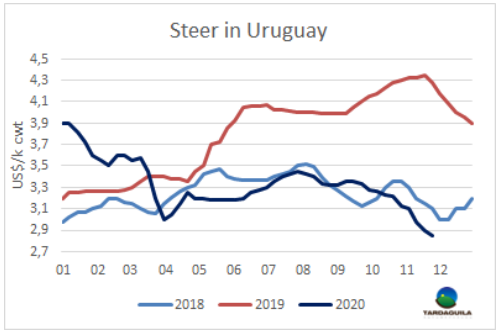 烏拉圭育成牛價(jià)格成為南方地區(qū)最低