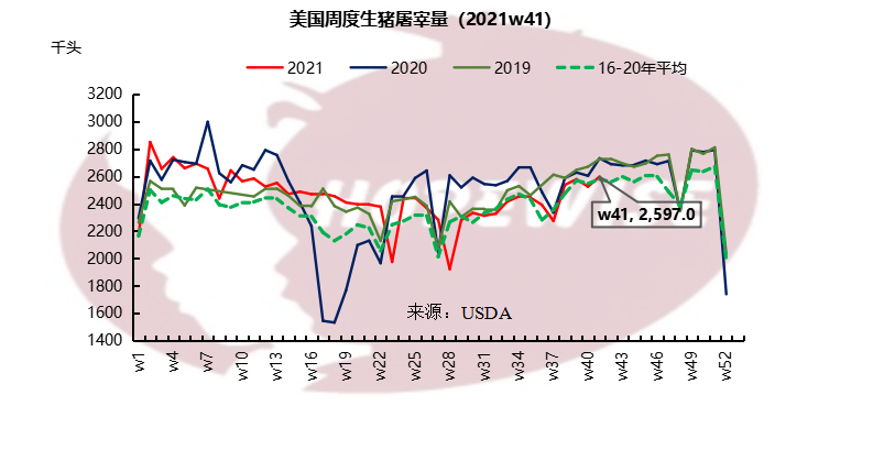 美國9月生豬均價(jià)0.83美金/磅,環(huán)比下滑15.45%,同比上漲47%。豬胴體價(jià)格1.07美金/磅,環(huán)比下滑10.47%,同比增長26.97%。生豬價(jià)格處于季節(jié)性下滑階段。9月最后一周,豬各部位肉的平均批發(fā)價(jià)格與6月中旬達(dá)到的年度峰值相比下降約20%。雖然生豬產(chǎn)量有增加,仍低于去年同期水平。9月周度生豬屠宰量246.08萬頭,環(huán)比增加2.13%,同比減少3.04%。生豬周度產(chǎn)量23.32萬噸,環(huán)比增加1.96%,同比減少3.36%。
