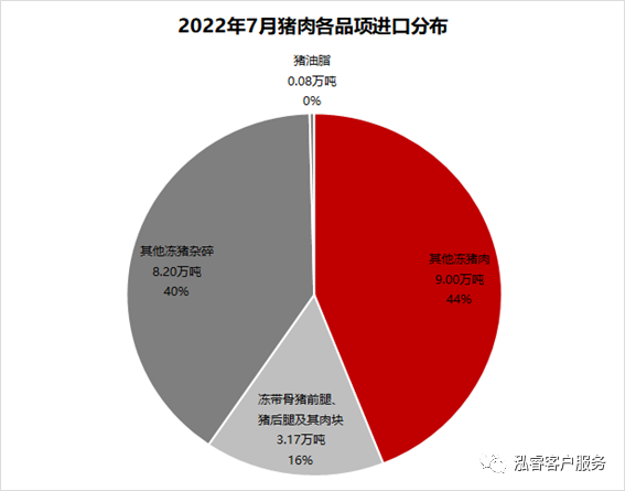 從進(jìn)口品項看,以進(jìn)口其他凍豬肉和其他凍豬雜碎為主,這兩品項進(jìn)口量之和占比84%。