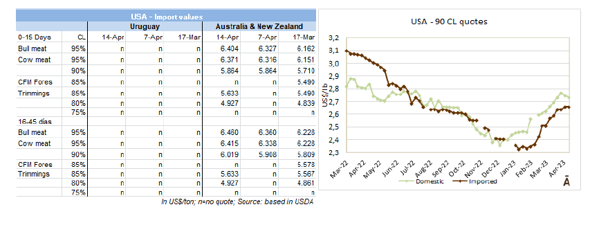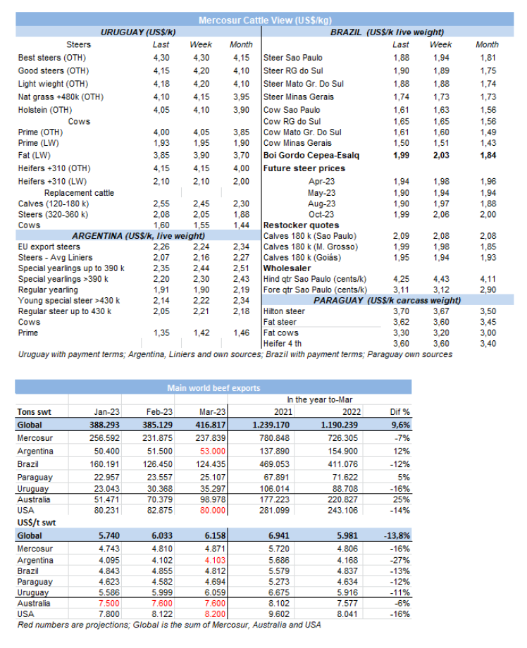 根據(jù)兩家進(jìn)口商的意見,逾越節(jié)假期后該地區(qū)新的猶太屠宰期的前景仍然“不是很明確”。第一批人員計(jì)劃在本月底左右抵達(dá)該地區(qū)。就阿根廷而言,這個想法是從“開放價(jià)格”開始的,就像在其他場合所做的那樣。在烏拉圭,由于用于猶太屠宰的成品牛供應(yīng)不足,所以并沒有明確的供應(yīng)情況可以告知。而巴西和巴拉圭地區(qū)的成品牛需求價(jià)在$6500-$7000之間。