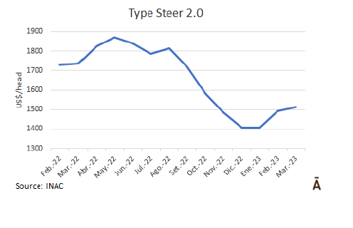這些閹公牛的采購價(jià)格在3月上漲了60美元,達(dá)到了1170美元,因此兩者之間的差額(INAC稱之為工業(yè)附加值)減少了38美元,達(dá)到343美元每頭。