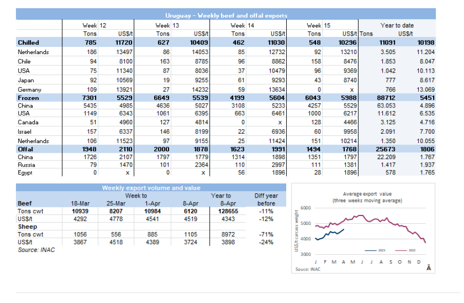 一位進(jìn)口商認(rèn)為,智利進(jìn)口市場“比往年的這個時候要更加低迷”。四月底到港的19/20切全?,F(xiàn)貨半現(xiàn)貨在$5600-$5800。 至于5月份,巴拉圭包裝商尋求$6000的下限,這一價(jià)值尚未得到買家的驗(yàn)證,而一年中的成品草飼牛的供應(yīng)量開始減少。
