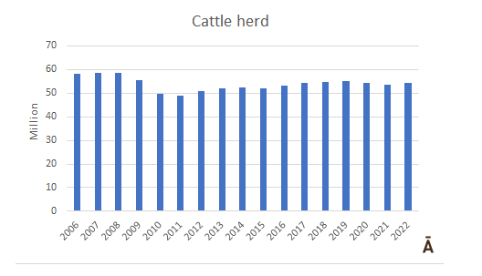 2022年活牛存欄增長1.5%,但仍未達(dá)到 2016-2019年的平均水平