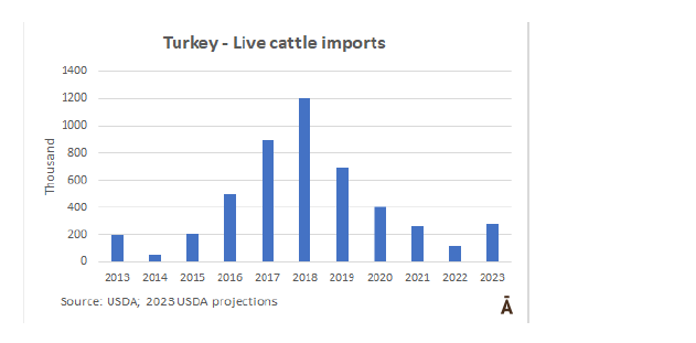 美國農(nóng)業(yè)部預(yù)測2023年土耳其牛進(jìn)口量將增加一倍以上