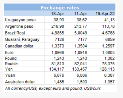 來自阿根廷的消息稱用$14800的FOB做參考,以及多$200給最好的品牌。就烏拉圭而言,一家出口商用上周的交易以$13800的離岸價(jià)成交談到了一個“穩(wěn)定的市場”。