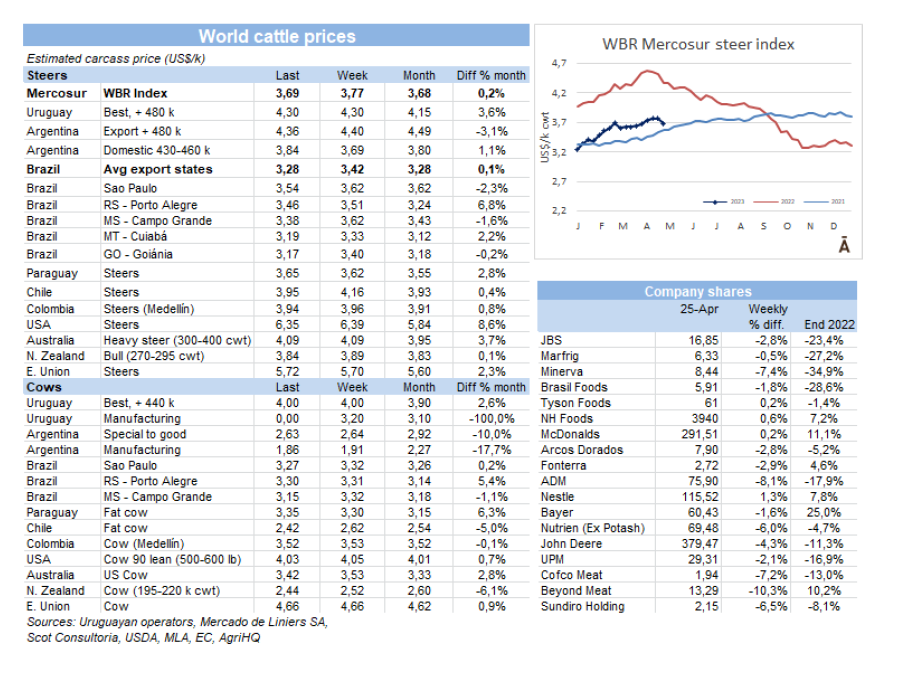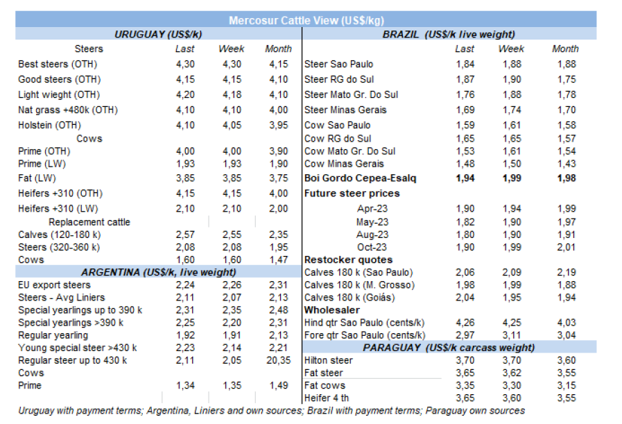 在巴拉圭,待宰公牛的最新交易價(jià)格為每公斤$3.65,但本周該行業(yè)停止購(gòu)買(mǎi),預(yù)計(jì)市場(chǎng)將面臨下行壓力。