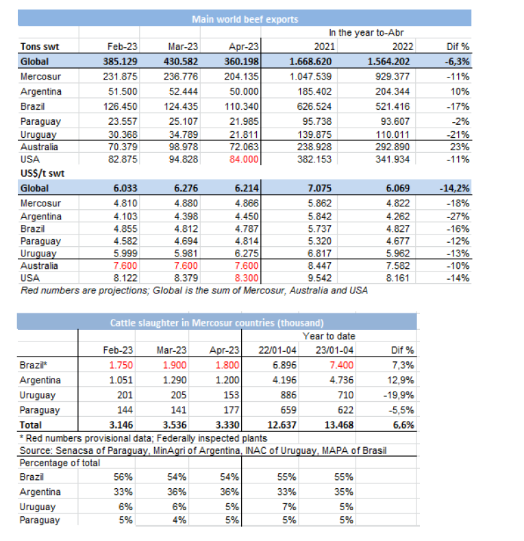 4月全球對華牛肉出口創(chuàng)2021年12月以來新低