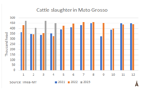 4月份馬托格羅索州的牛屠宰量年增長36%