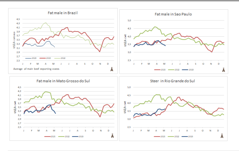 在巴拉圭,本周的跌幅為10美分,待宰公牛的價格為每公斤3.40美元。