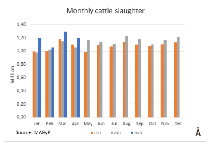 增長的主要原因是奶牛屠宰量增長了20%。公牛的屠宰量增加了9%,母牛的屠宰量增加了11%,而小公牛的屠宰量減少了1%。