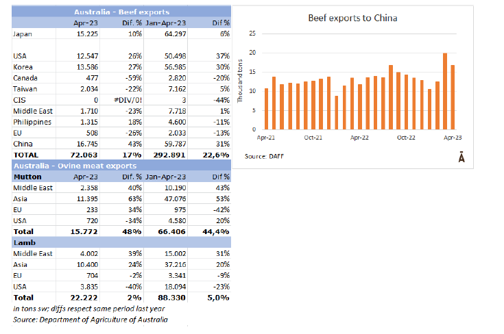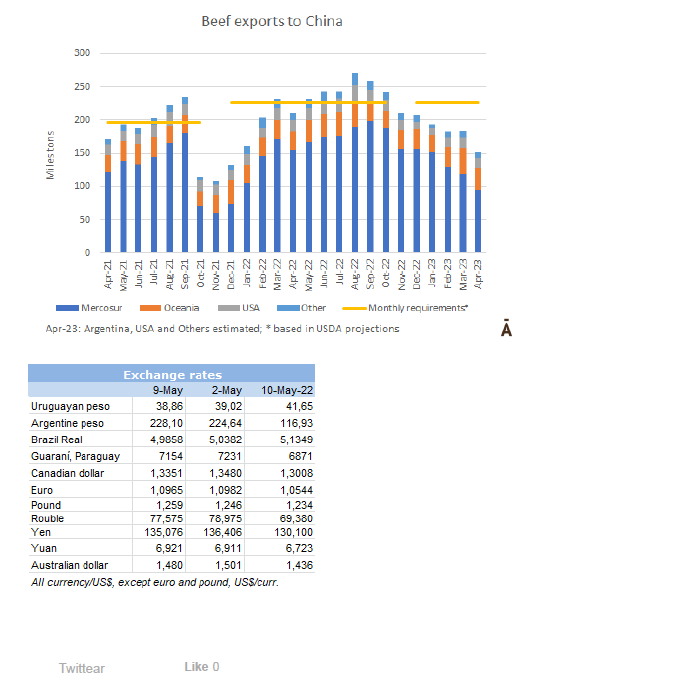 由于存欄量仍很大,一些貨物的到達時間被推遲到6月初。進口商解釋說,由于利率上升,以及美元在以色列的上漲,商業(yè)運作正變得艱難。除此之外,由于以色列政府采取措施的危機情況,肉類消費下降,全國有一半的人已經(jīng)參加了三個多月的大型示威活動。所有這些都導致了銷售和消費的減少。