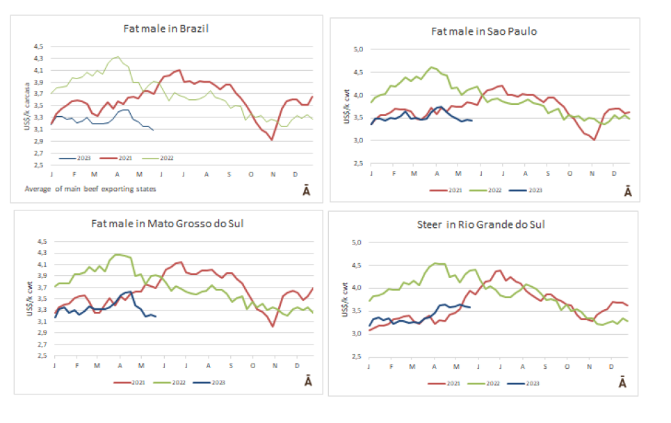 上周,由于市場(chǎng)并不活躍,巴西主要市場(chǎng)的成品閹牛價(jià)格下跌。