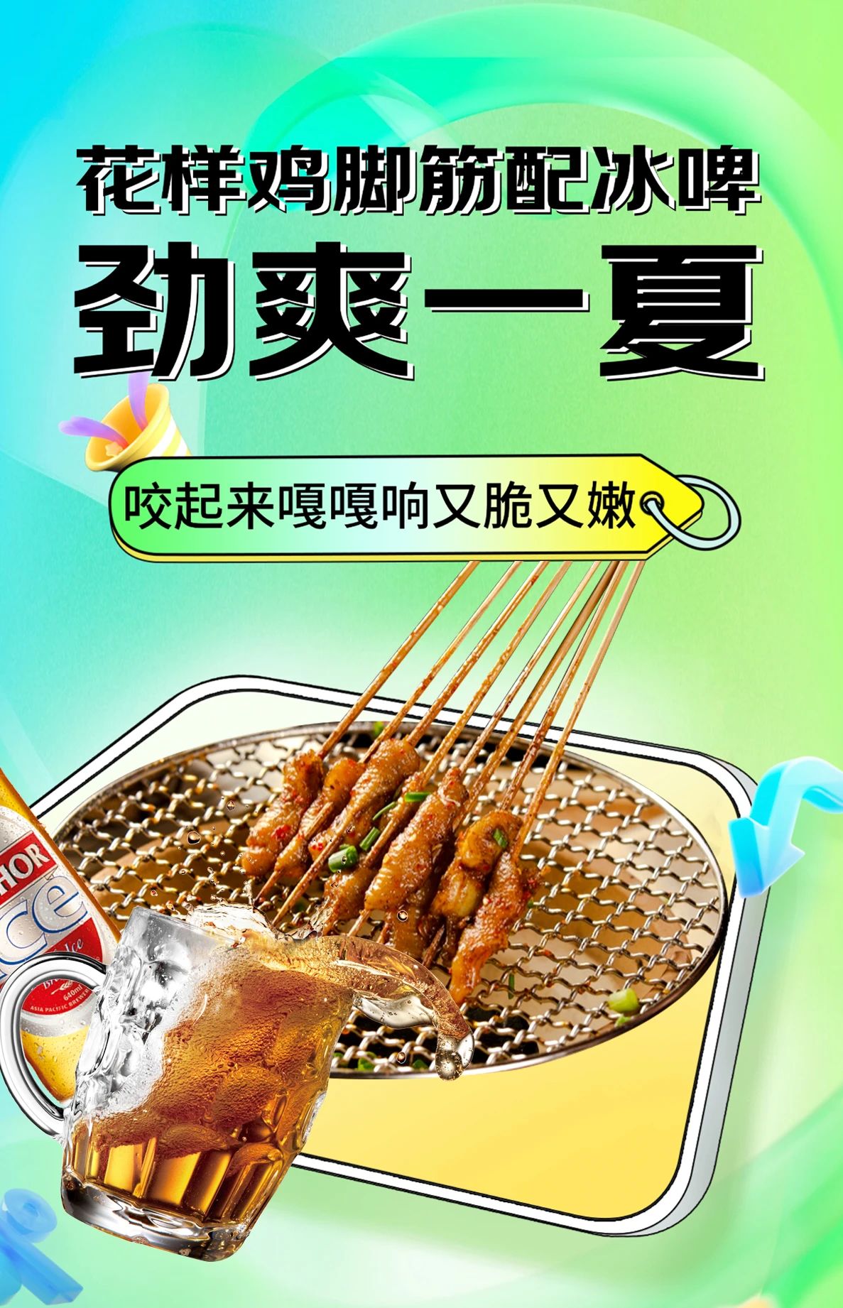 在夏日的晚風(fēng)中感受或熱血、或悠然、或放空的時光。一桌燒烤、一鍋串串,少不了雞腳筋的勁爽加持,配上一杯啤酒或清茶,便是人間好夢長。