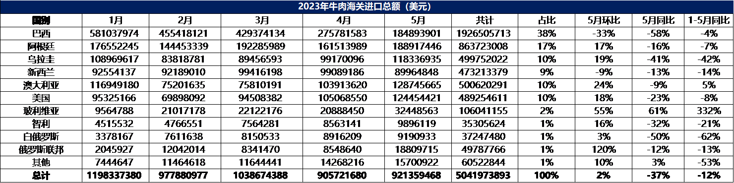 2023年5月冷凍牛肉進口數(shù)據(jù)