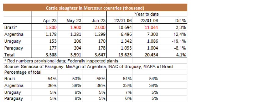 根據(jù)財(cái)產(chǎn)轉(zhuǎn)移文件(DTE)的初步數(shù)據(jù),今年第六個(gè)月送去屠宰的牛的數(shù)量顯示同比增長(zhǎng)14%,與前三個(gè)月的情況一致。