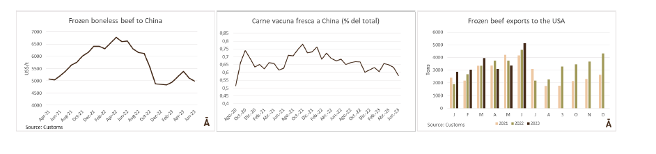 輸華總量為15,565噸,比5月份減少2380噸。中國(guó)是烏拉圭6月份出口牛肉的58%的出口國(guó),這是自2020年8月以來(lái)的最低比例。中國(guó)的進(jìn)口價(jià)格的急劇下降和其他國(guó)家的堅(jiān)挺,比如美國(guó),使其減少了主要客戶(hù)的優(yōu)勢(shì)。