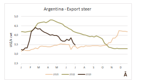 2022-2023年期間烏拉圭的牛肉產(chǎn)量下降了約15萬(wàn)噸