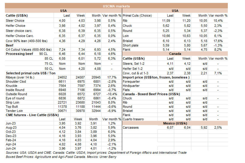 上周,在舊大陸夏季來(lái)臨之際,冰鮮牛肉市場(chǎng)走強(qiáng)。進(jìn)口市場(chǎng)消息稱(chēng),阿根廷產(chǎn)品的參考價(jià)格在12,800-13,200美元(FOB)之間,一些公認(rèn)的品牌達(dá)到13,400美元。烏拉圭參考價(jià)格則是在11,800-12,000美元的FOB價(jià)格。
