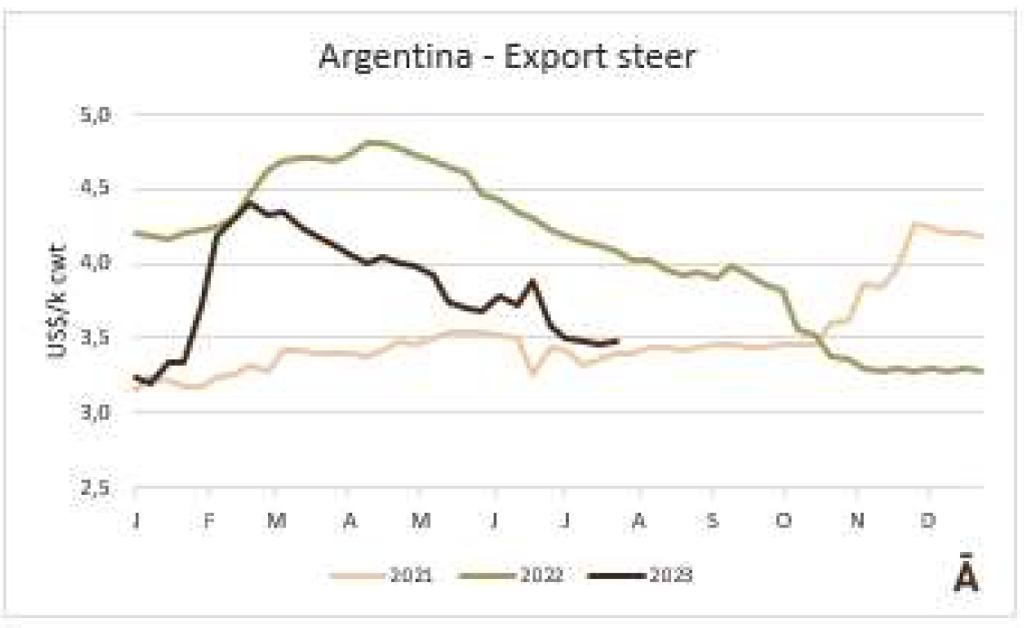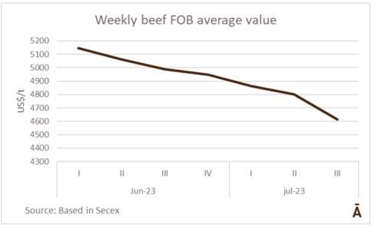 牛肉的平均出口價(jià)格在六周內(nèi)下降了10%