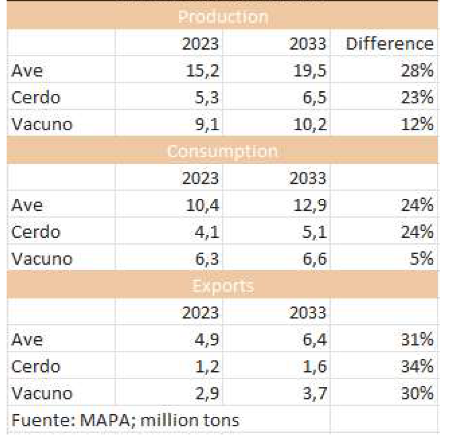 到2033年,巴西的肉類產(chǎn)量將增加近700萬噸