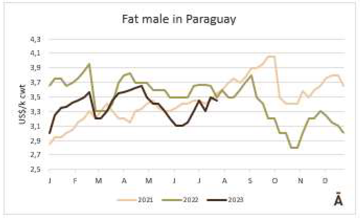 巴拉圭成品牛市場采購價(jià)格下降,據(jù)一位消息人士稱,公牛屠宰盡管本周以每公斤酮體3.50美元的價(jià)格成交,母肥牛下周以3.15美元的價(jià)格成交,但新裝載量的價(jià)格降低了約10美分。