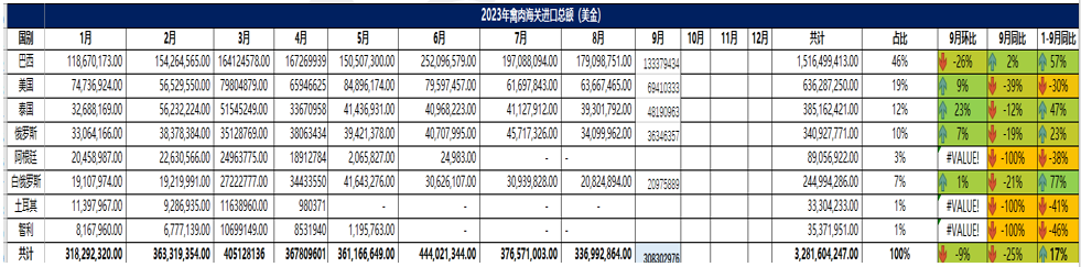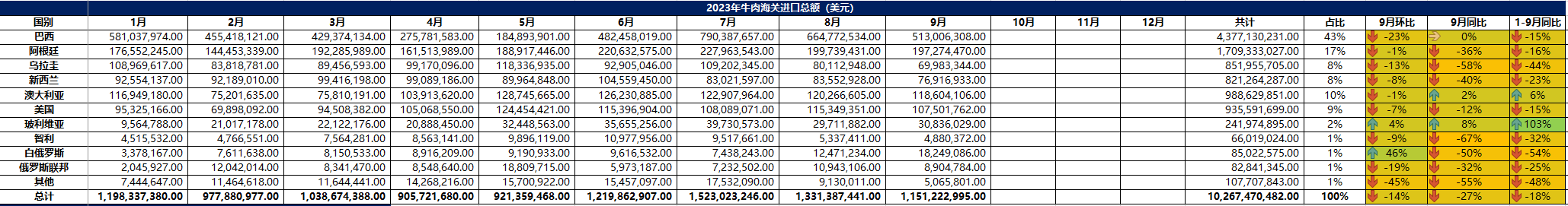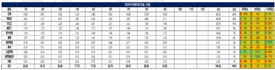 2023 年 9月冷凍牛肉進(jìn)口概況