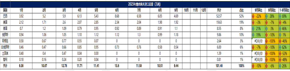 2023 年 9 月冷凍禽肉進(jìn)口概況