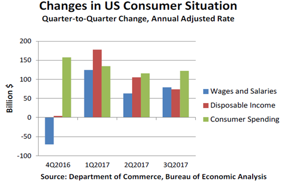 11月零售貿(mào)易和食品服務(wù)銷售總額整體同比上漲6.4%,是2017年年同比增幅最大的一個(gè)月。但這并不能說(shuō)明食品行業(yè)的零售業(yè)績(jī)。 相較于通常所謂的消費(fèi)者行為驅(qū)動(dòng)助力而言,消費(fèi)者的需求支出一直堅(jiān)如磐石。收入和工資增長(zhǎng),也包括2016年年底的可支配收入的乏力在2017年也回到了積極的軌道。這就為來(lái)年消費(fèi)者支出的持續(xù)增長(zhǎng)提供了更多鼓勵(lì),也意味著零售銷售的可喜趨勢(shì)。隨著去年最后一個(gè)季度中的加速下跌趨勢(shì),今年一整年食品零售總額下降了一個(gè)百分點(diǎn)。鑒于這種趨勢(shì),牛肉需求的表現(xiàn)也是非常不錯(cuò)的。