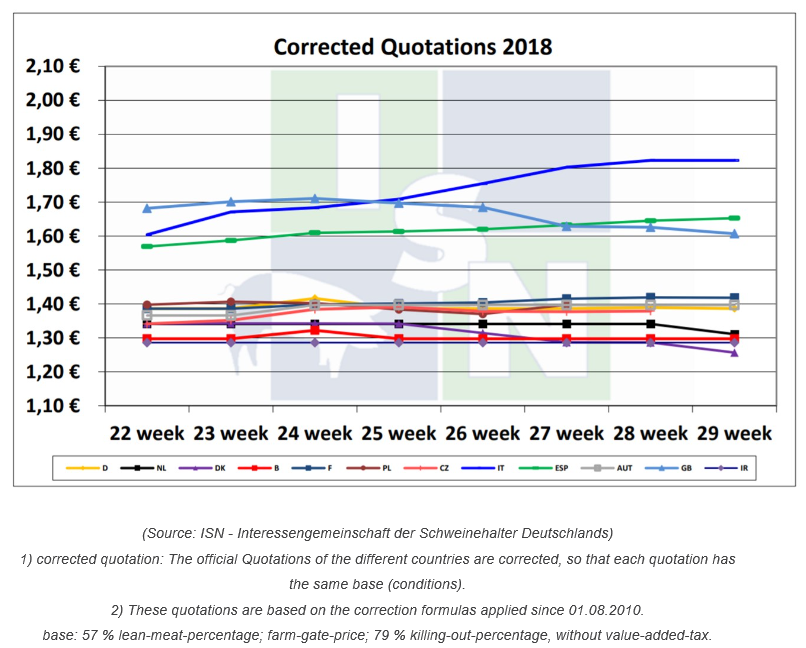 隨著大量游客蜂擁至歐洲南部國(guó)家,這些地方的夏季燒烤正如火如荼。因此,肉類(lèi)需求依然維持在高位。西班牙生豬價(jià)格小幅上漲。與過(guò)去數(shù)周相比,歐洲其他國(guó)家的生豬價(jià)格變化不大,幾乎沒(méi)有變。隨著氣溫繼續(xù)變暖,待宰豬數(shù)量保持低位,屠宰量下降,胴體體重同樣減輕。奧地利上周胴體重量低于96.5公斤?;铙w市場(chǎng)依然在等待收購(gòu)價(jià)格上漲,屠企繼續(xù)壓價(jià)。