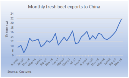 十一月牛肉出口量再次增長