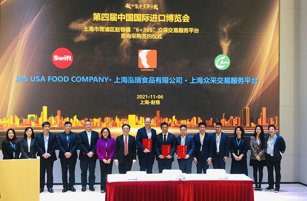 巴西集團(tuán)美國(guó)公司的JBS SWIFT與北京泓睿&上海泓瑞食品有限公司和上海眾采企業(yè)發(fā)展有限公司簽約,共涉及9000萬(wàn)美金的采購(gòu)意向訂單。