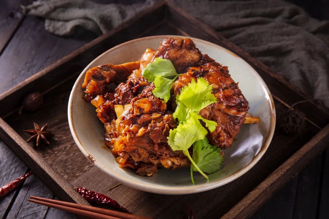 將豬背骨斬大塊,用清水清洗干凈,然后再用清水浸泡備用。將東北黃豆醬、排骨醬、蠔油混合,攪拌均勻成醬料。鍋入清水,冷水下鍋,放入浸泡過的豬背骨,加料酒去異味,大火燒開后撇浮沫,繼續(xù)燒5分鐘,將豬背骨焯透后,撈出備用。鍋入底油燒熱,下蔥、姜末爆香,放入混合醬料,炒香,放入焯好的豬背骨,翻炒均勻,再放入姜片、大蔥段、桂皮、八角、香葉、小茴香、冰糖,這是傳統(tǒng)東北醬大骨的香料,現(xiàn)在很多人都喜歡吃辣,也可加些干辣椒和青花椒,炒香后,加適量清水,加糖色、老抽,上色,撇浮沫,然后轉(zhuǎn)小火燒1個半小時,如果想更加軟爛一些,可以燒2小時,期間也可再次調(diào)味調(diào)色,最后轉(zhuǎn)中火,將醬汁收濃,揀出蔥、姜、香料,出鍋裝盤即成。