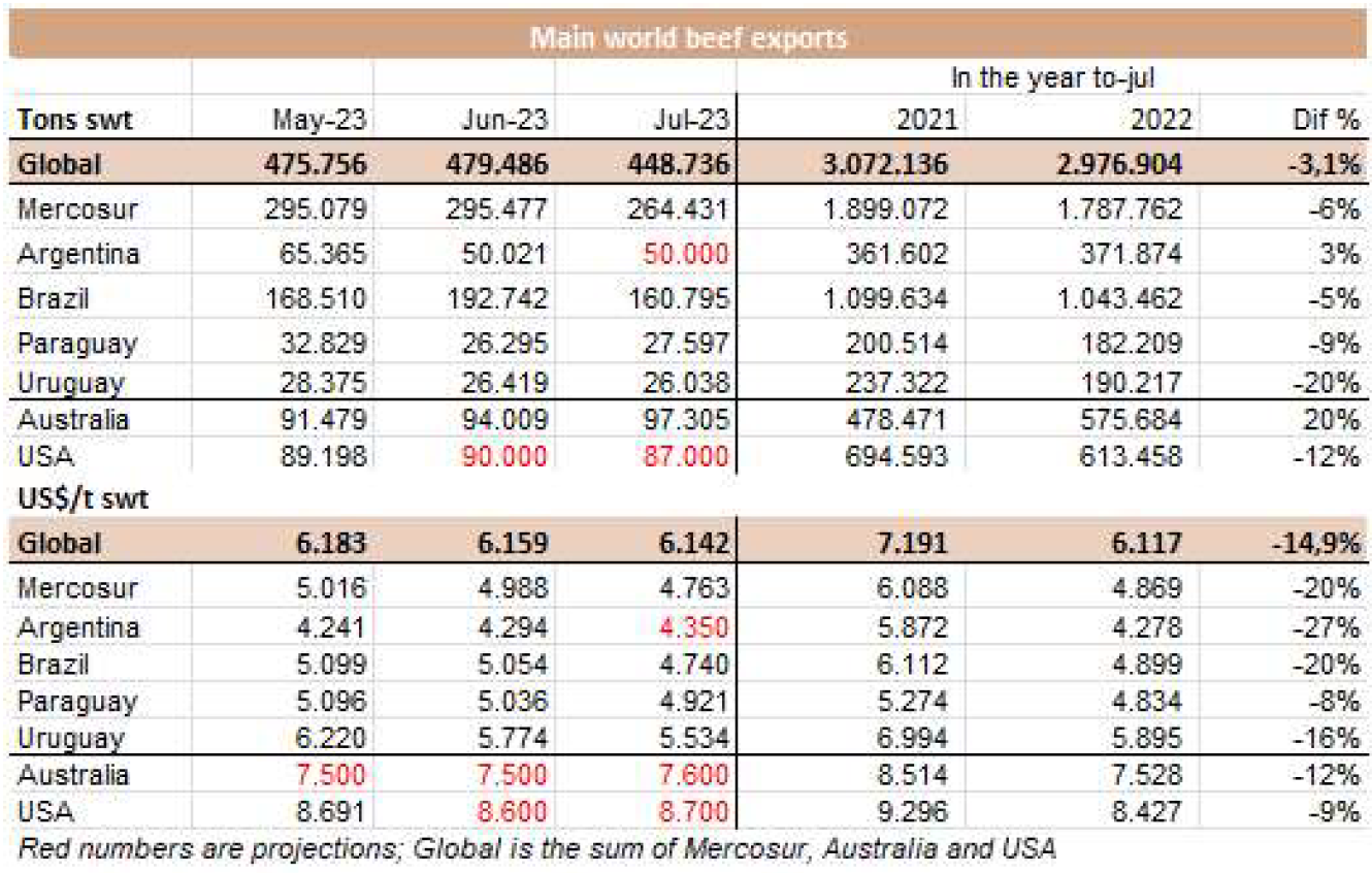 在WBR的最新報(bào)告中,公布了截至7月的月度出口表,其中新鮮牛肉的總出口存在錯(cuò)誤。下面是正確的圖表。