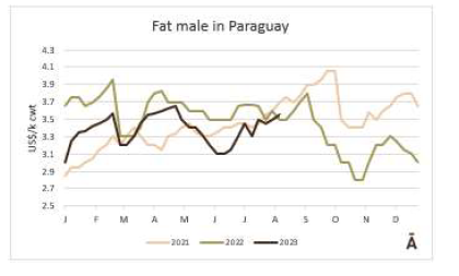 巴拉圭公牛屠宰價(jià)格為3.55美元,并將此價(jià)格定位為該地區(qū)價(jià)格自高到低排行第二的國家,但特種牛的價(jià)格下跌了10-15美分。