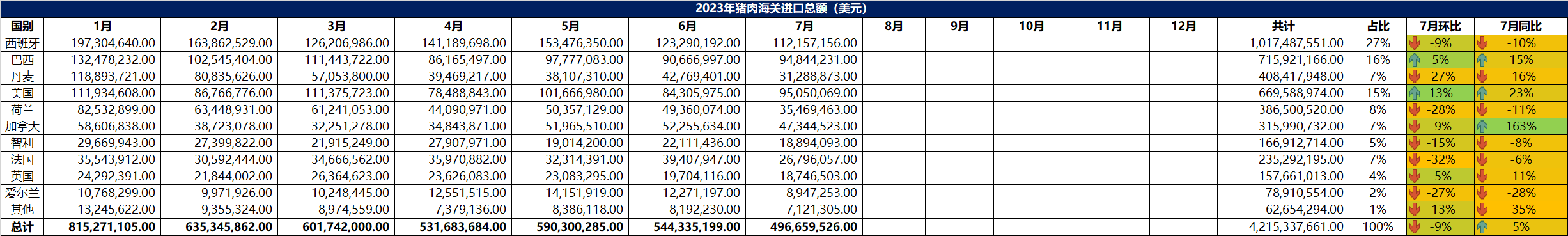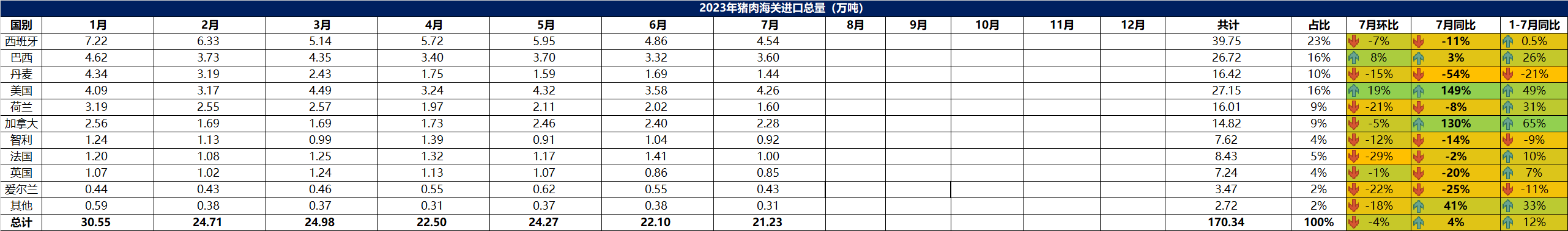 2023年7月冷凍豬肉進口概況