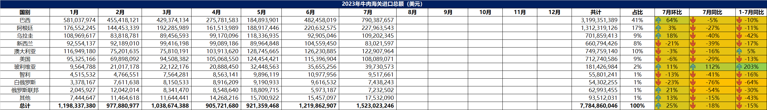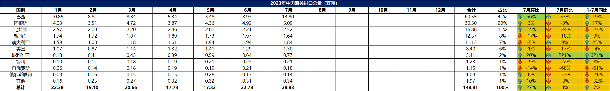 2023年7月冷凍牛肉進口概況