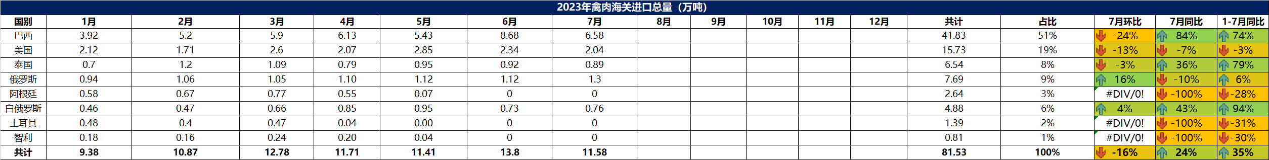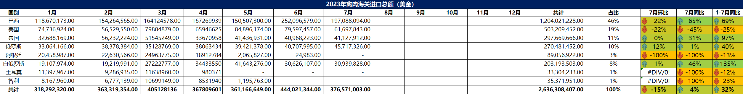 2023年7月冷凍禽肉進口概況