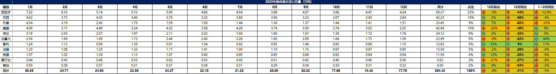 2023 年12月冷凍豬肉進(jìn)口概況