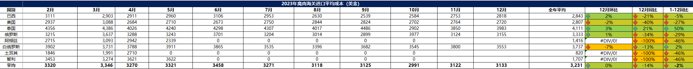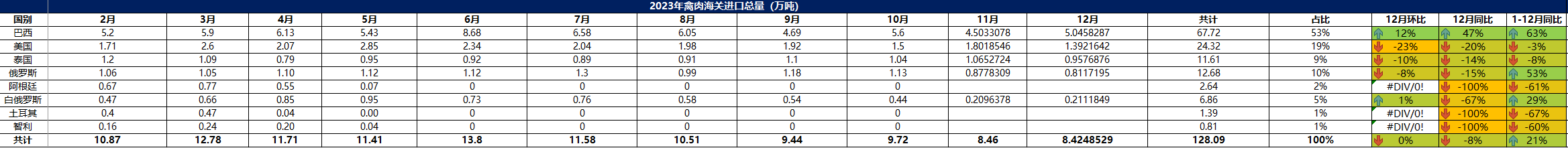 2023 年 12月冷凍禽肉進(jìn)口概況