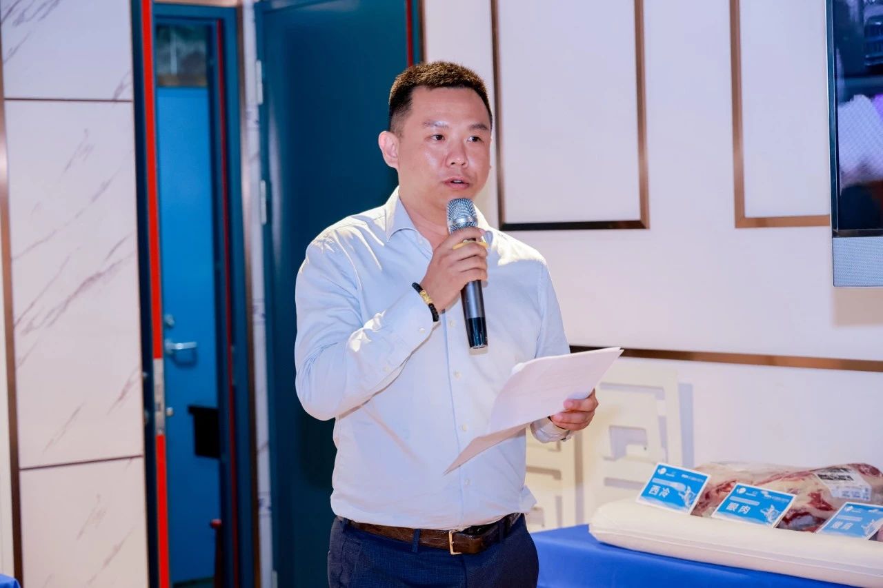 活動開場,北京泓睿國際貿易有限公司總經理楊勇先生向大家的到來表示歡迎,并介紹了中國肉類市場現狀。中國是牛肉產量和消費大國,且近年產銷量均有增加,2023年中國牛肉產量為750萬噸,消費量為1105.7萬噸,預計2024年中國牛肉進口量在265萬-270萬噸,其中主要為草飼牛肉。楊總介紹說:“我國牛肉消費特點突出,一是牛肉副產品需求量大,二是這兩年高端谷飼牛肉需求量增長?!?/span>