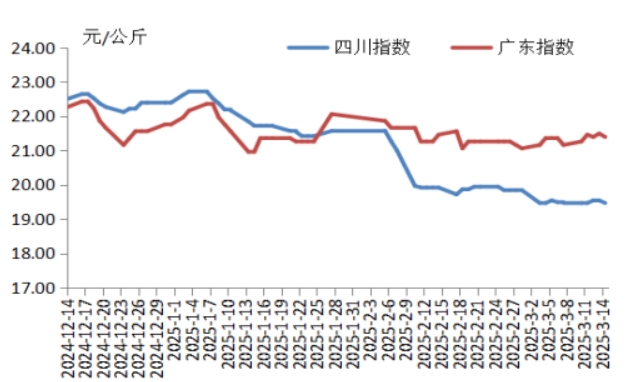 本周華北地區(qū)豬肉價格環(huán)比微漲,周內(nèi)先漲后跌。周前中期,規(guī)模主體普遍看漲后市,部分散養(yǎng)戶壓欄惜售,支撐生豬及豬肉價格上漲。周后期,終端消費疲軟,農(nóng)貿(mào)、批發(fā)市場成交節(jié)奏遲緩,經(jīng)銷商壓價拿貨,屠宰企業(yè)降價保銷量。